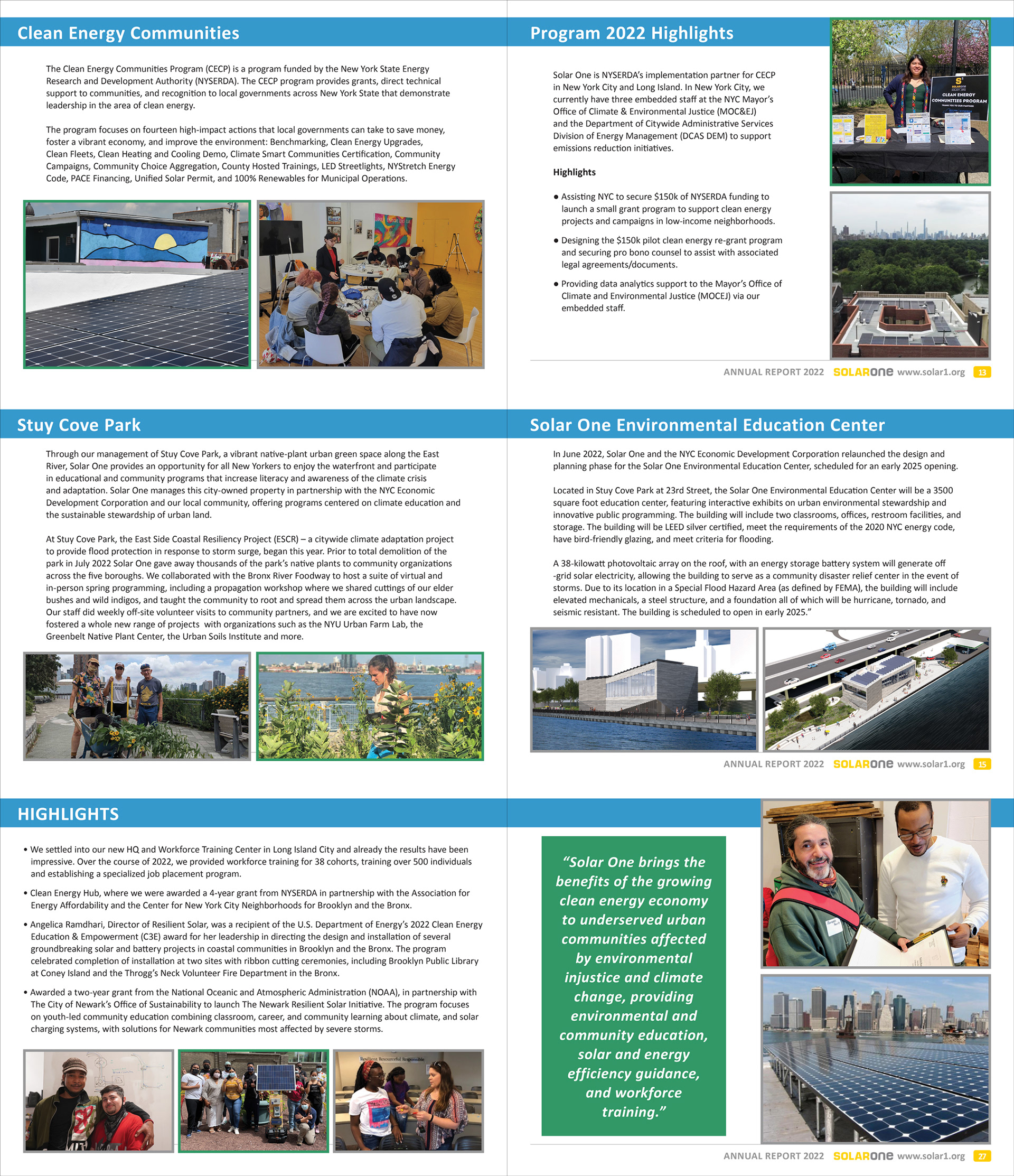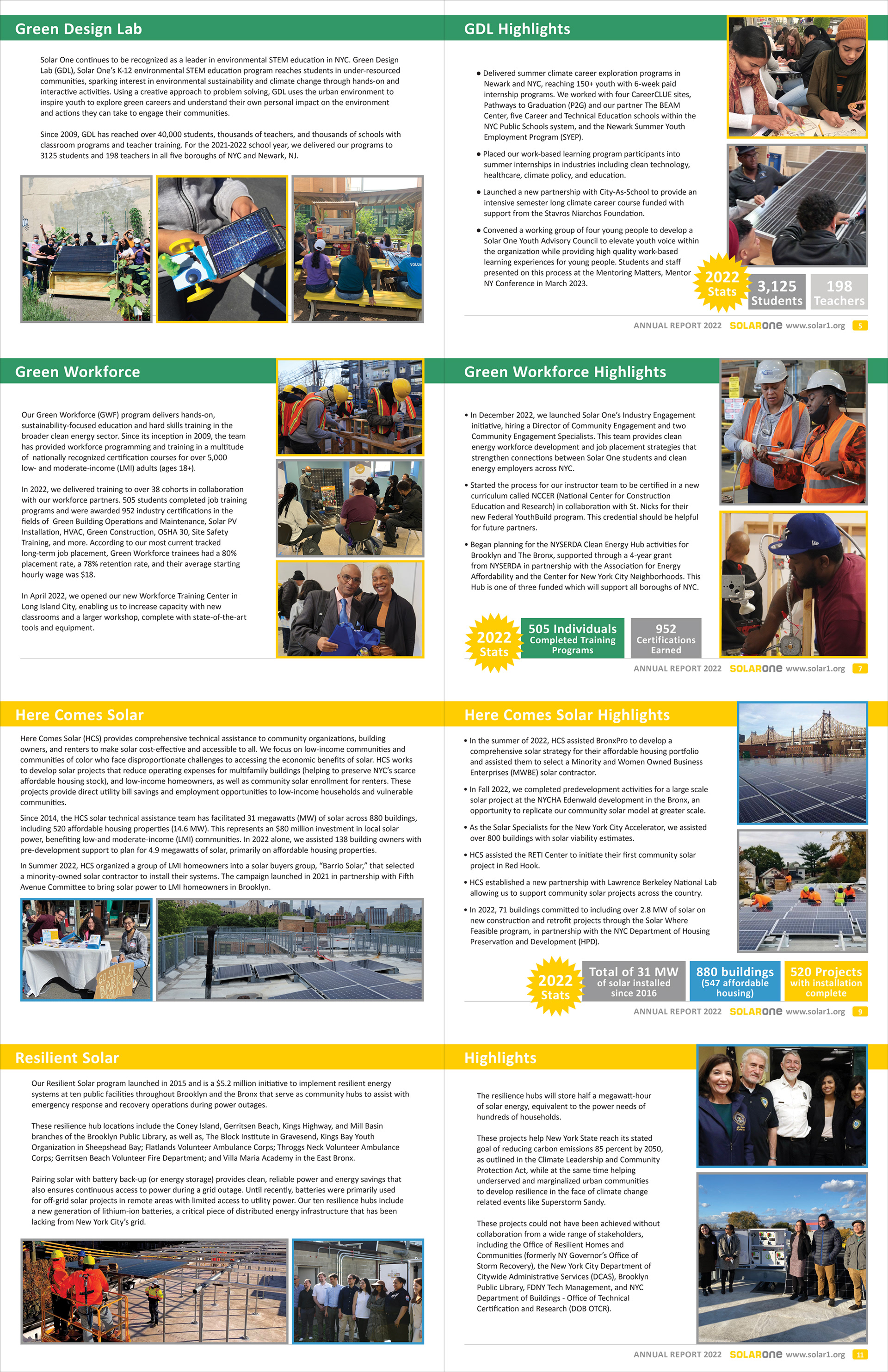 SolarOne multipage 2022 annual report cover showcased the community they serve with the technology & eduction they provide. The following 2 collection of page spreads showcase the final primary page layout design. #corporatedocumentlayout #pagelayout #multipagelayoutdesign #reportdesign #documentlayoutdesign #documentlayout #nonprofitdesign #volunteerdesignwork #customgraphics #artdirection #creativedirection #photoediting #imageediting #colorcorrecting #illustratorgraphics #chartdesign #chartdevelopment #nonprofitdesign