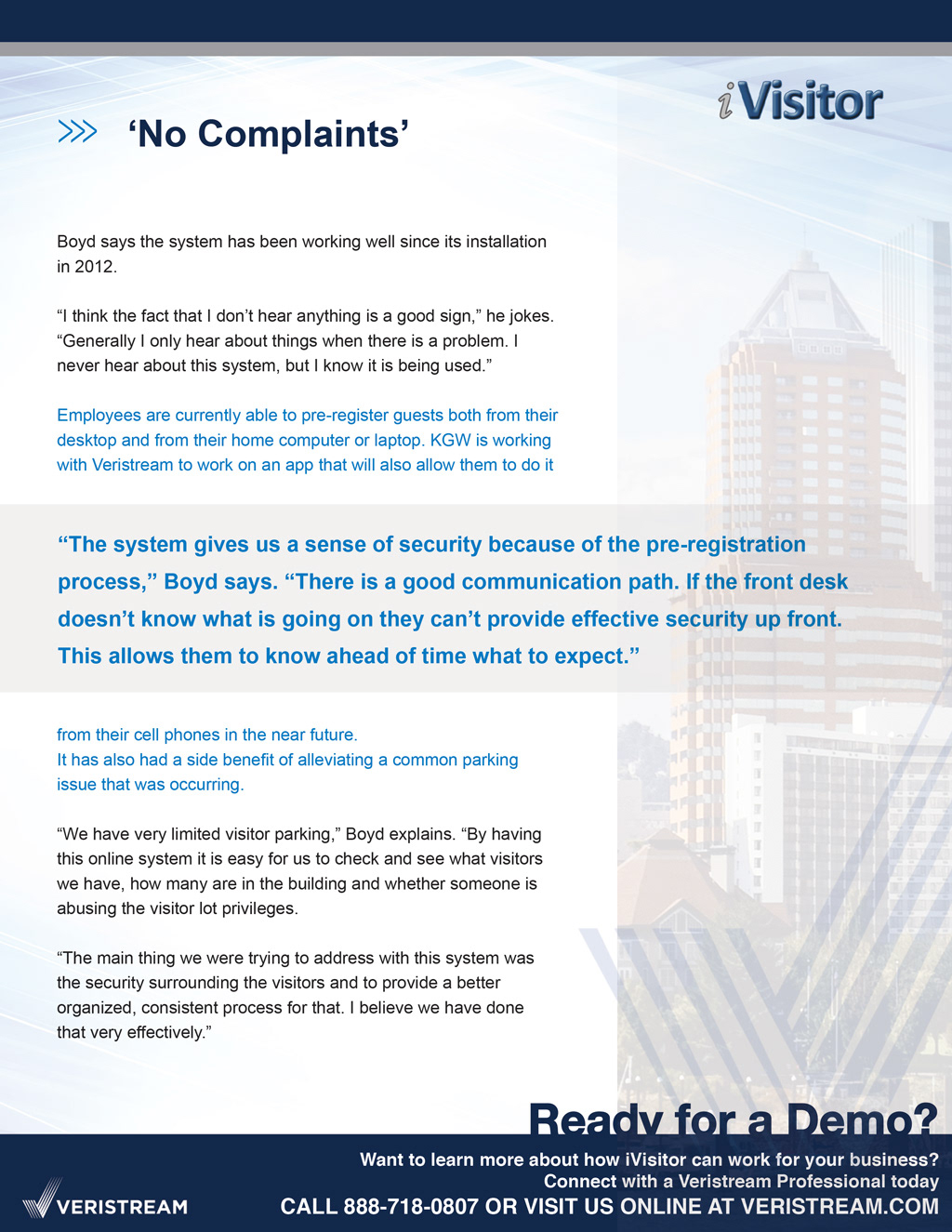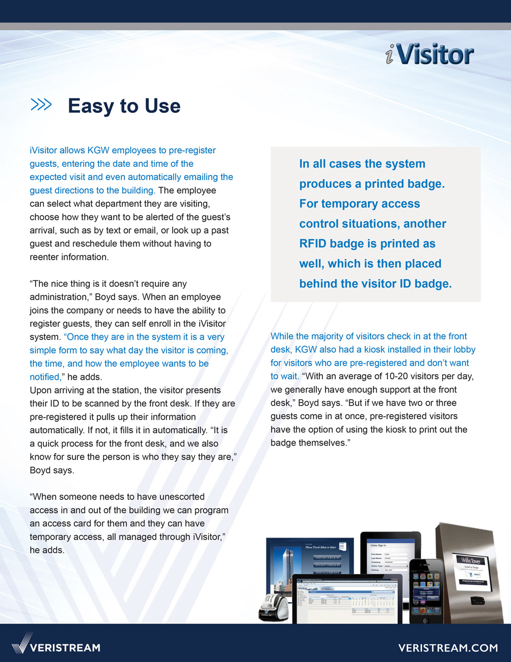 Multipage case studies designed within established brand & layout guidelines for Veristreams iVisitor software systems installed in key corporate offices in various large city metropolises through the nationwide. - #casestudydesign #pagelayoutdesign #corporatedocumentlayout #photoediting #multipagelayoutdesign #corporatereportlayout